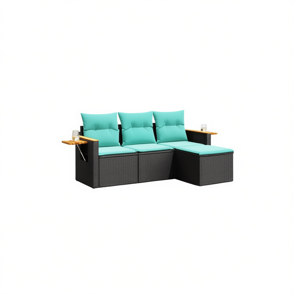 Ensemble de canapé de patio en rotin noir 3 places, résistant aux intempéries, mobilier de jardin extérieur, design contemporain
