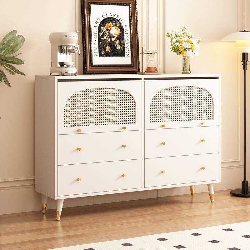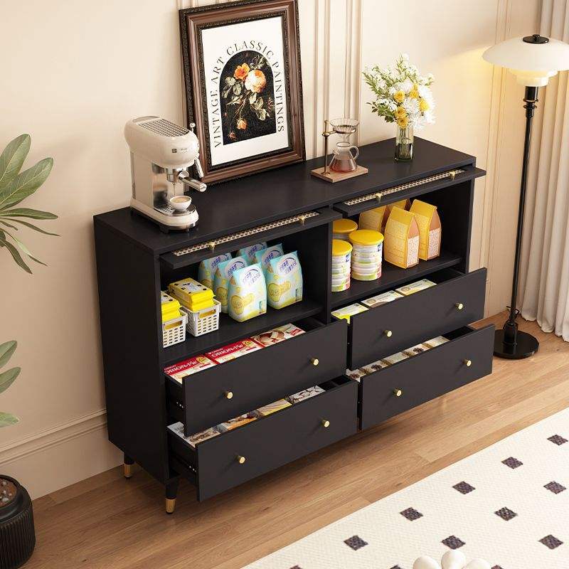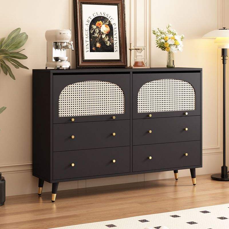 Commode en rotin noir tressé avec rangements multi-niveaux pour salon et salle à manger