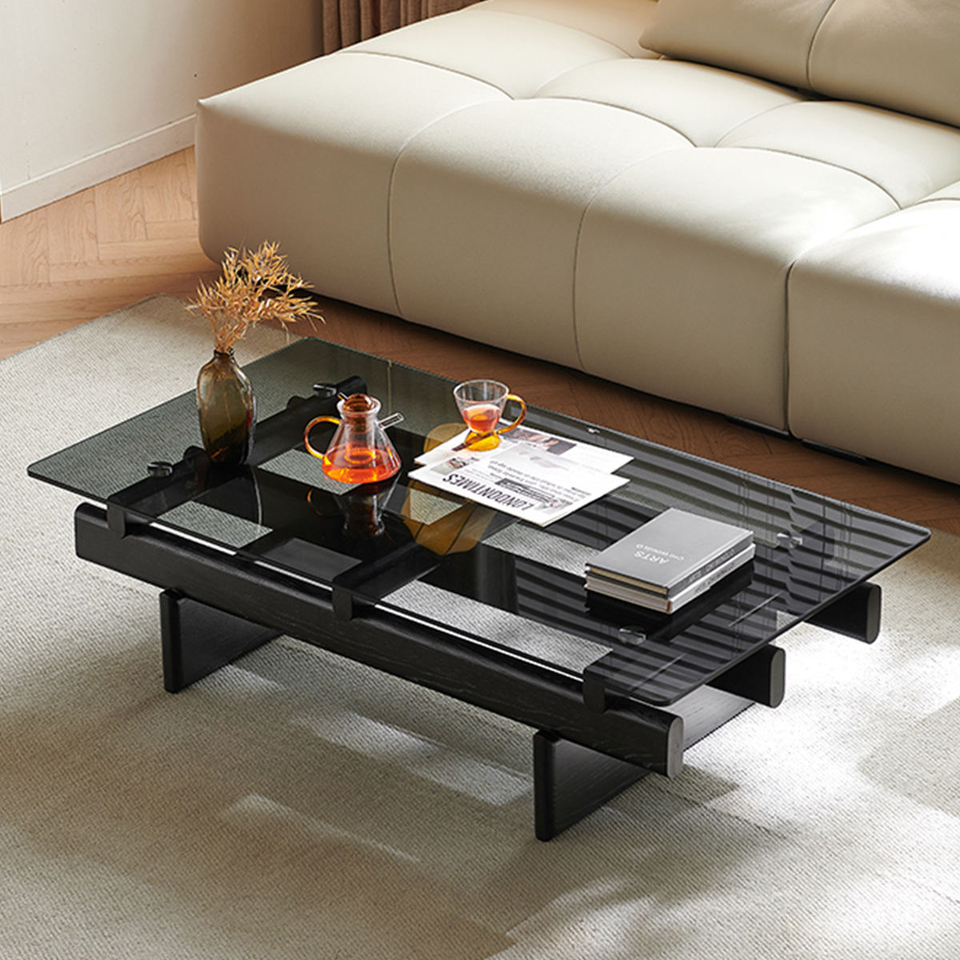 Table basse en bois moderne haut de gamme, durable et écologique, avec plateau en verre rectangulaire noir, pour salon, hôtel, meubles de salon