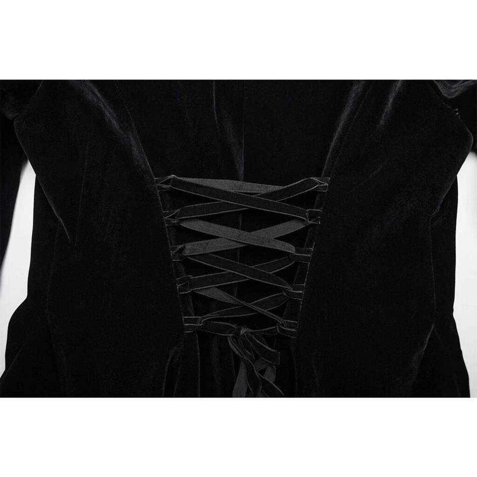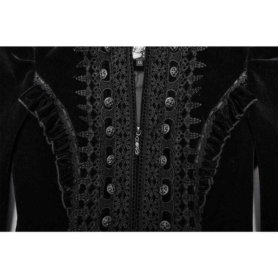Manteau de fête gothique rétro noir en velours avec broderie symétrique et empiècements en dentelle pour femme style punk