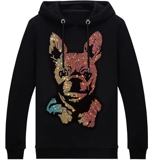 Black Rhinestone Pullover Hoodie Men Streetwear Rhinestones Hood & Sleeves 500GSM Oversized Custom Logo Winter Hoodies