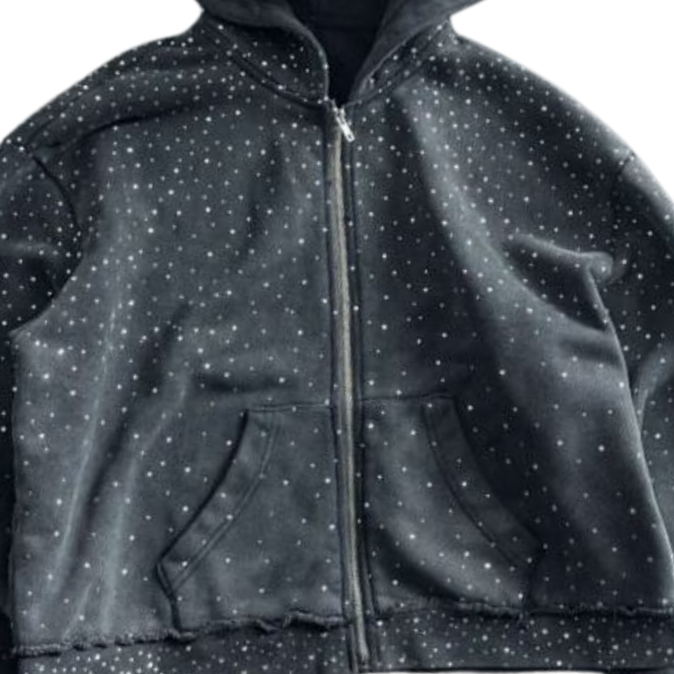 Sweat à capuche zippé noir avec strass, style streetwear, tendance, chaud, en coton, unisexe, design de créateur, pull d'automne