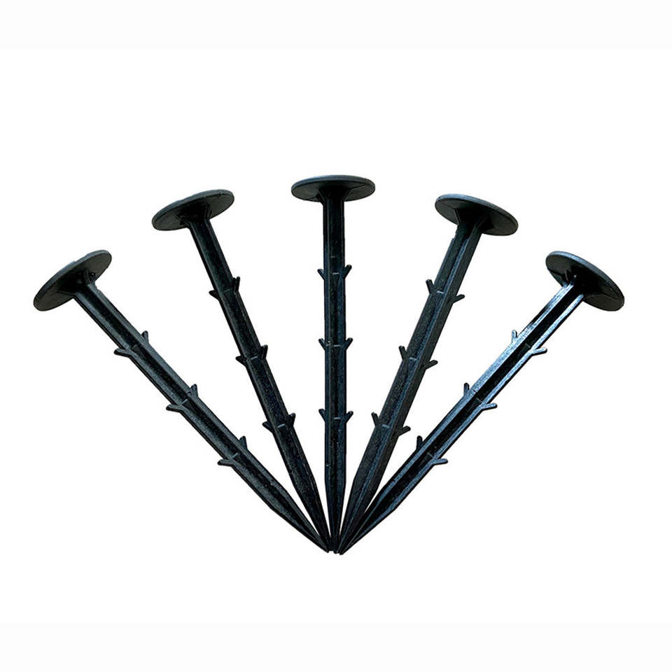 Clous de fixation en plastique noir côtelés à pointe barbelée pour géotextile, pour usage agricole et de jardinage