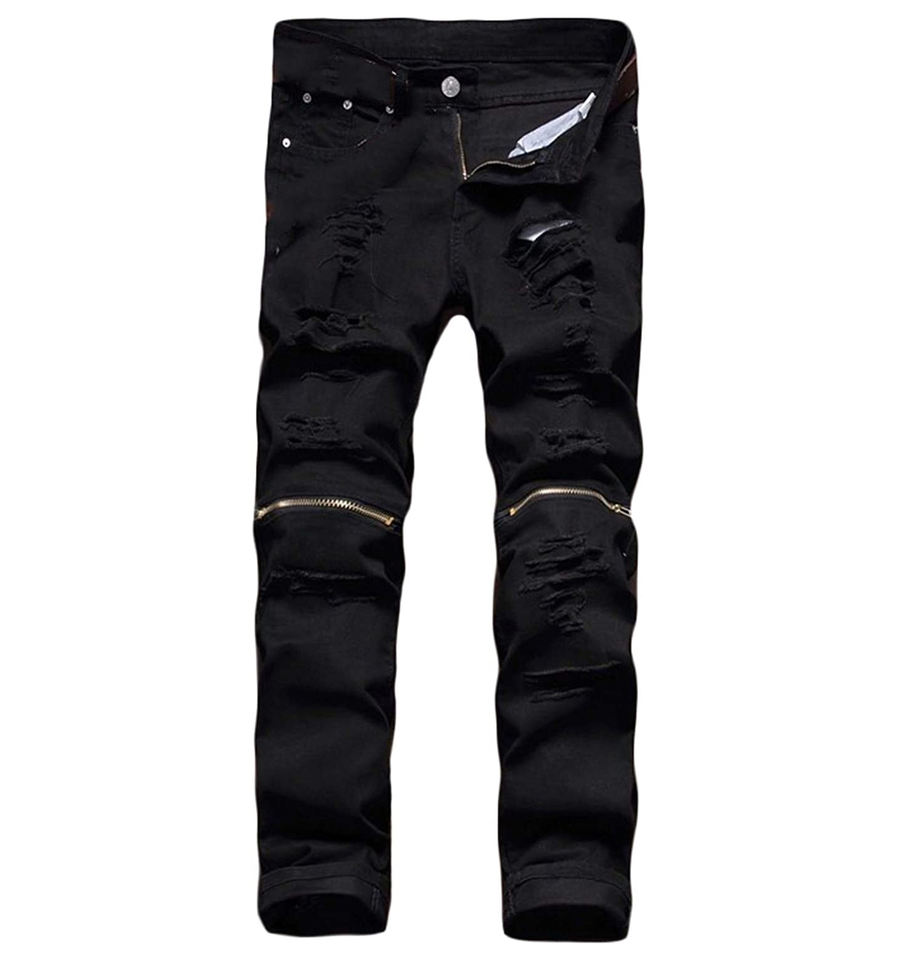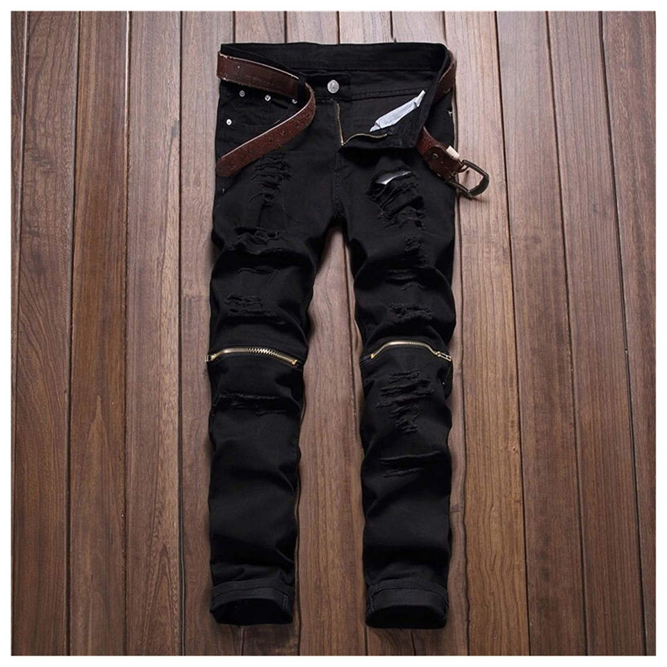 Jean skinny en denim à fermeture éclair personnalisé léger en toile extensible noire pour hommes