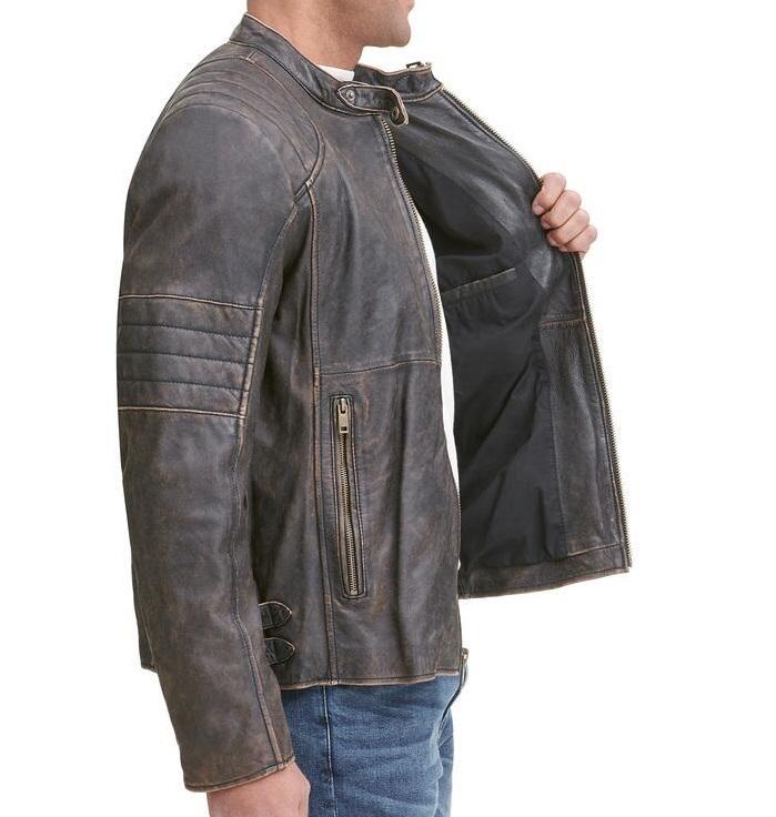 Veste de vélo en cuir véritable vieilli de style motard classique vêtements de sport durables pour motos et vêtements d'extérieur
