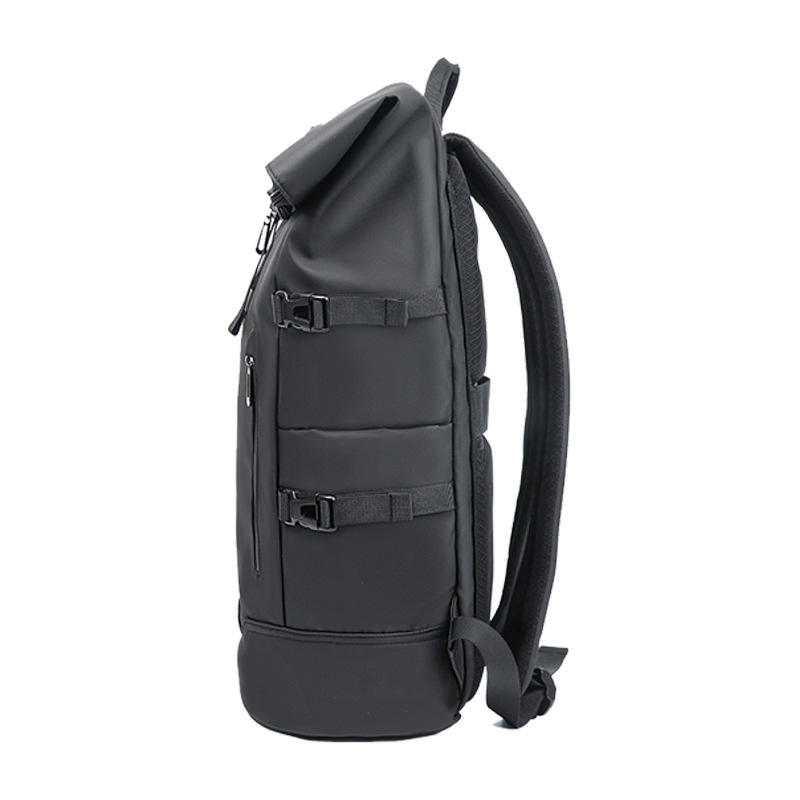 Sac à dos noir à enroulement pour homme 20-35L, imperméable avec poche intérieure zippée, loisirs et voyage, printemps 2025