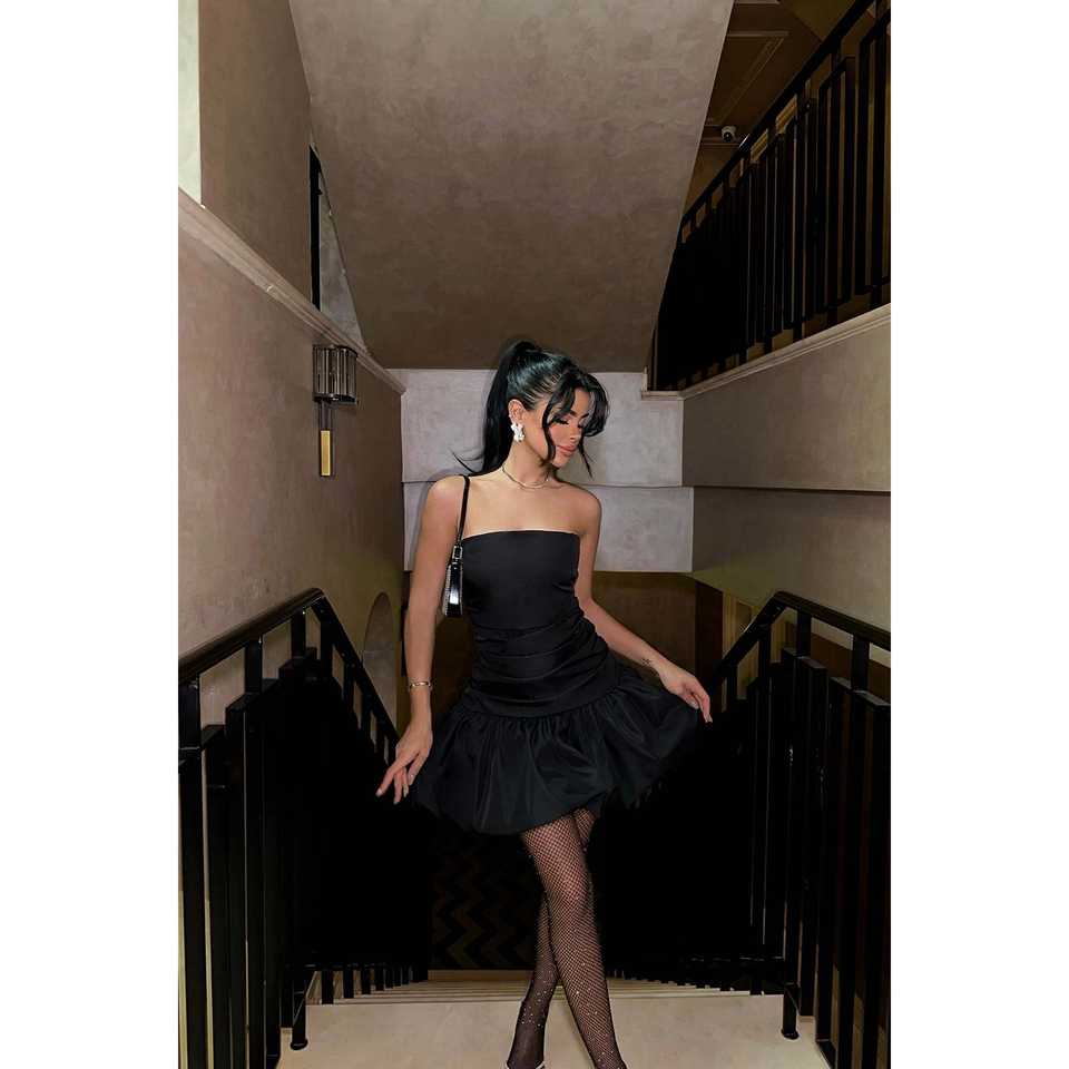 Robe de cocktail courte noire plissée