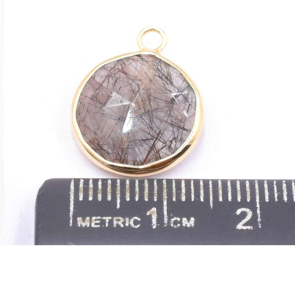 Nom de la pierre:Pendentif en quartz rutilé noir, forme ronde, lunette argentée, plaqué or