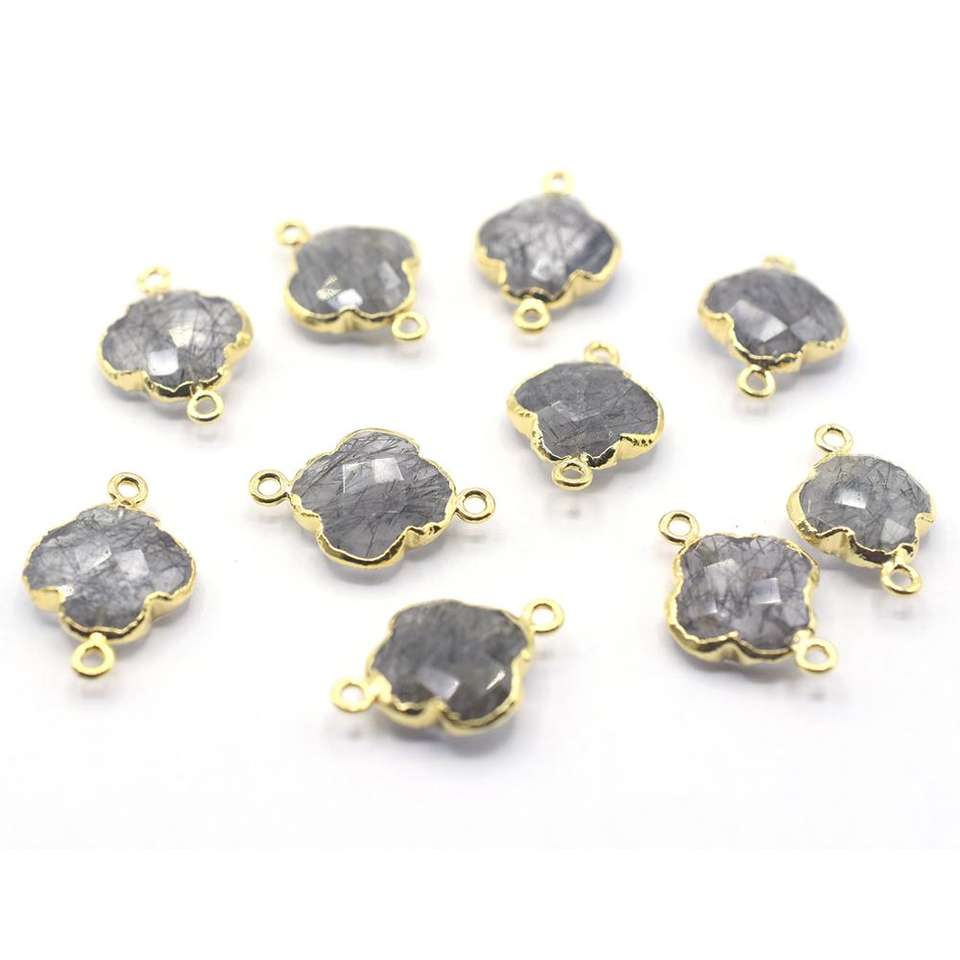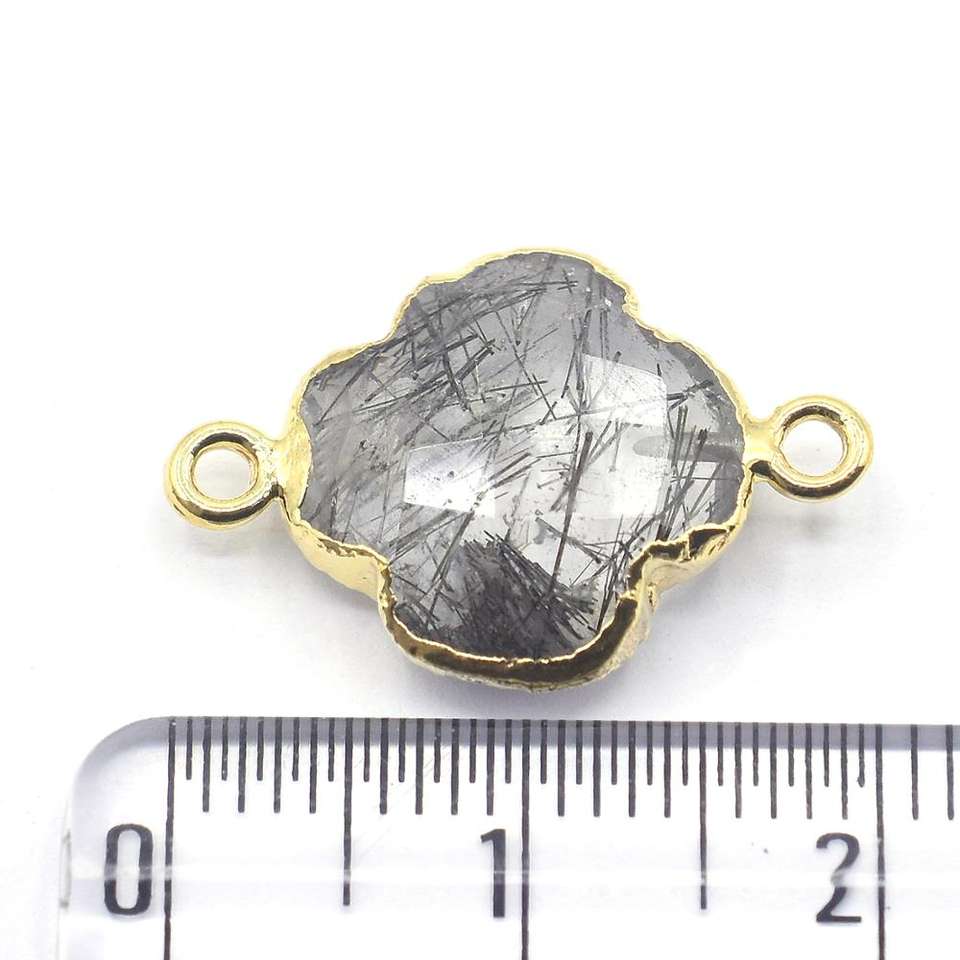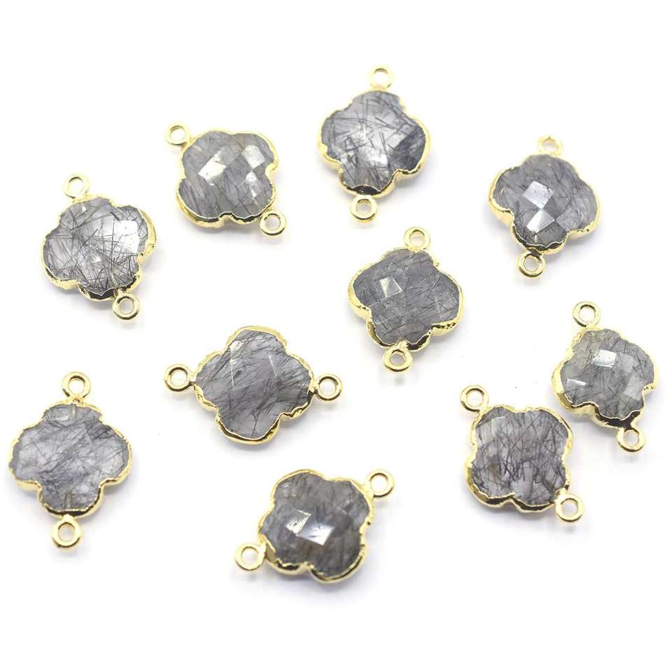 Product Name:Black Rutilated Quartz Quatrefoil Shape Gold Plated Connector