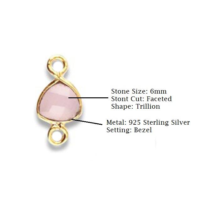 Connecteur de lunette taillée à facettes en forme de trillion de rutile noir en argent sterling vermeil de 6mm avec placage au rhodium