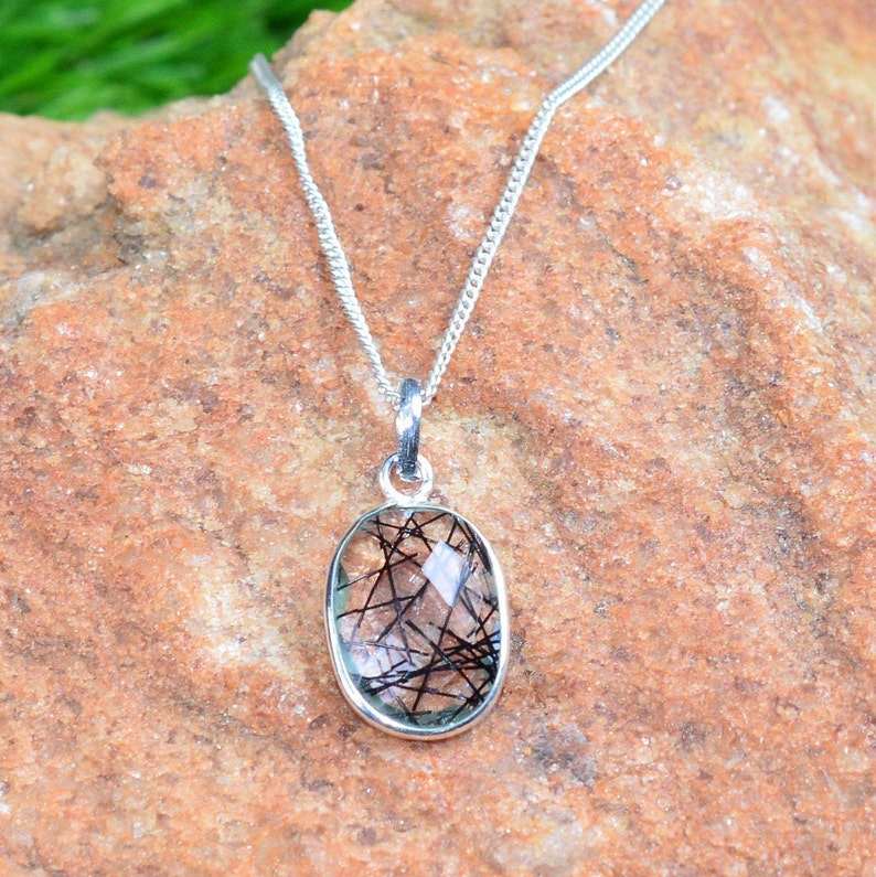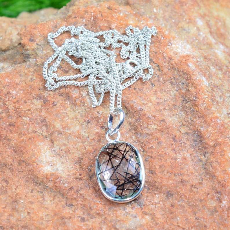 Pendentif en pierre précieuse de rutile noir, facetté, en argent sterling 925, bijoux faits à la main, cadeau élégant pour femmes