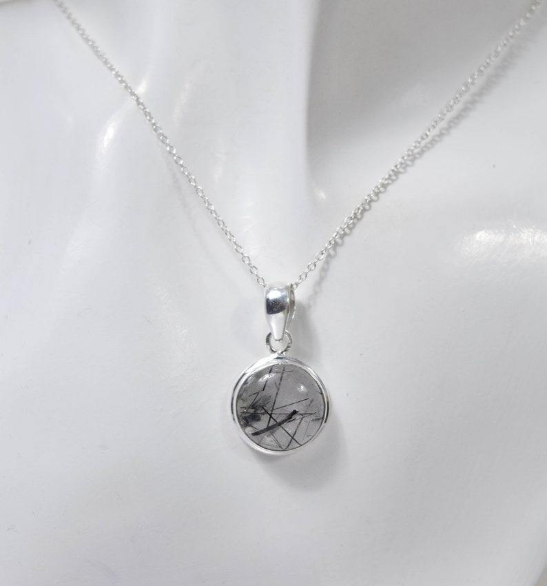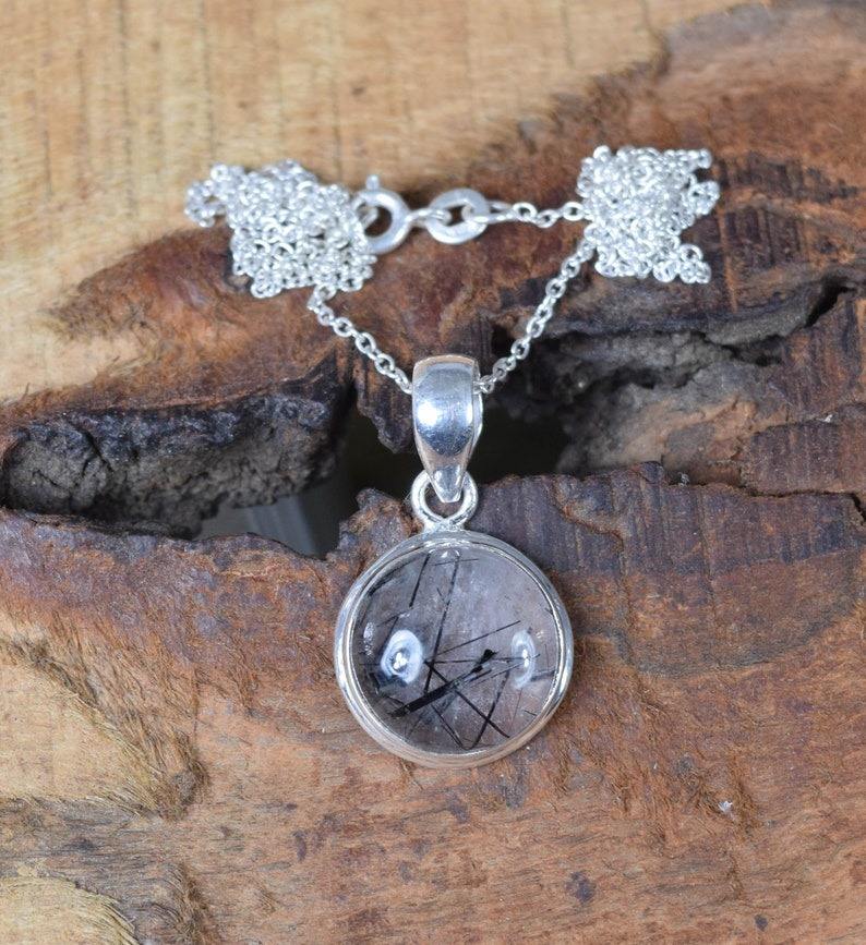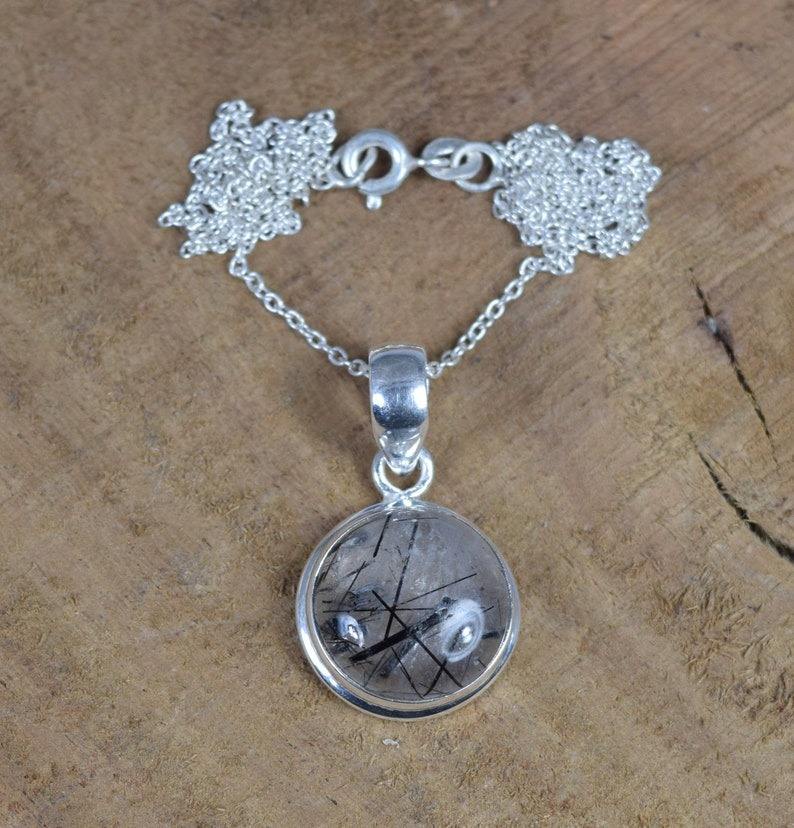 Noir Rutile fait à la main mode pendentif 925 en argent Sterling pierres précieuses pendentif bijoux forme ovale concepteur pendentif cadeau pour elle