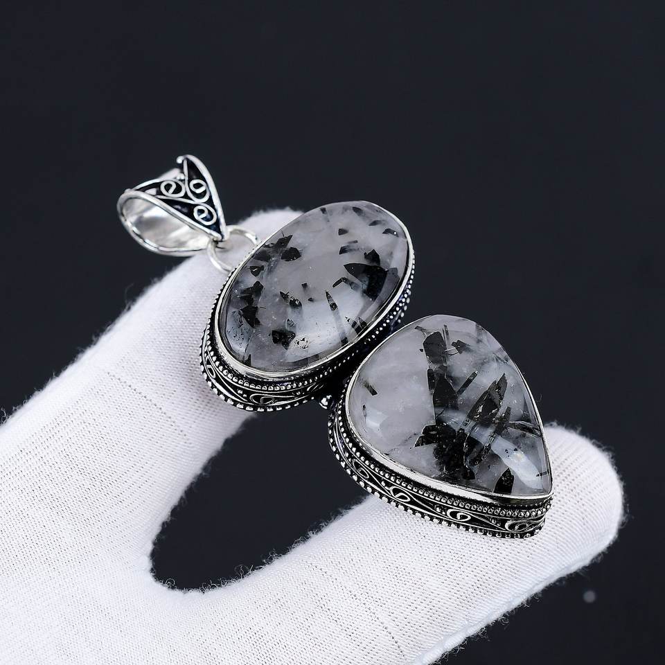 925 argent Sterling Boho Vintage bijoux pour femmes à la main noir rutile pierre précieuse pendentif élégant Design classique
