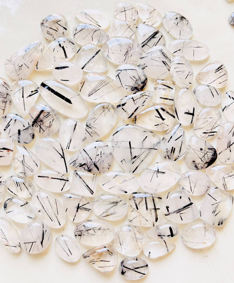 Nom du produit:Pierre précieuse lâche de rutile noir de qualité supérieure Cabochon de quartz rutile noir