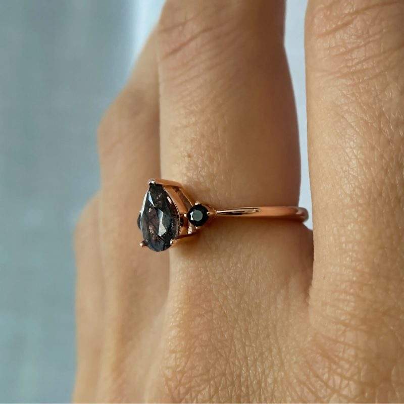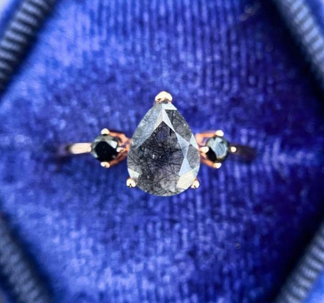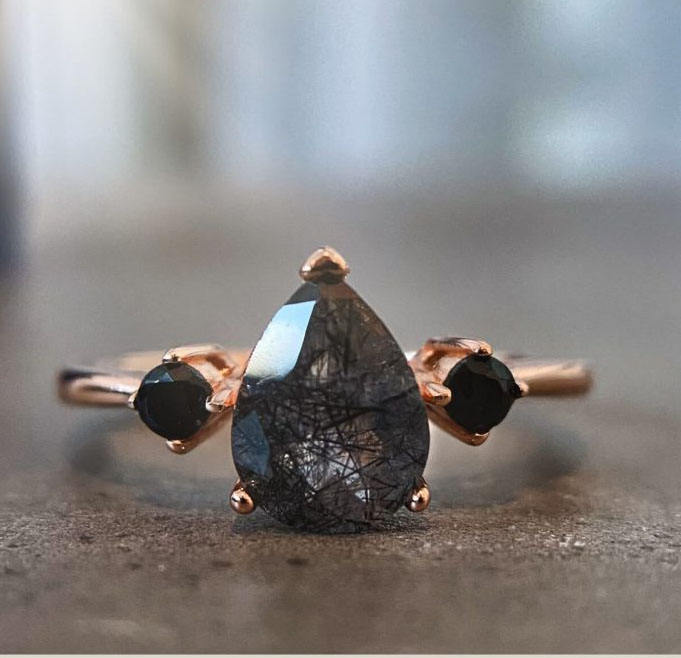 Black Rutile Stone Solid 925 Sterling Silver Romantic Minimalist Engagement Band Rose Gold Plated Ladies Wedding Ring