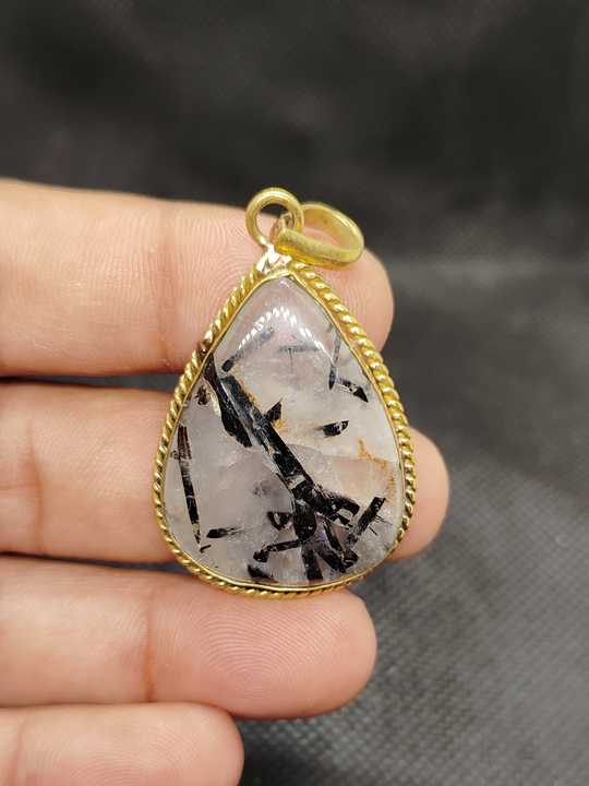 Pendentif Fantastique en Quartz Rutile Noir et Laiton, Pierre Précieuse Puissante, Cadeau Élégant pour Femme, Port Quotidien, Énergie et Concentration, Pièce d'Inspiration