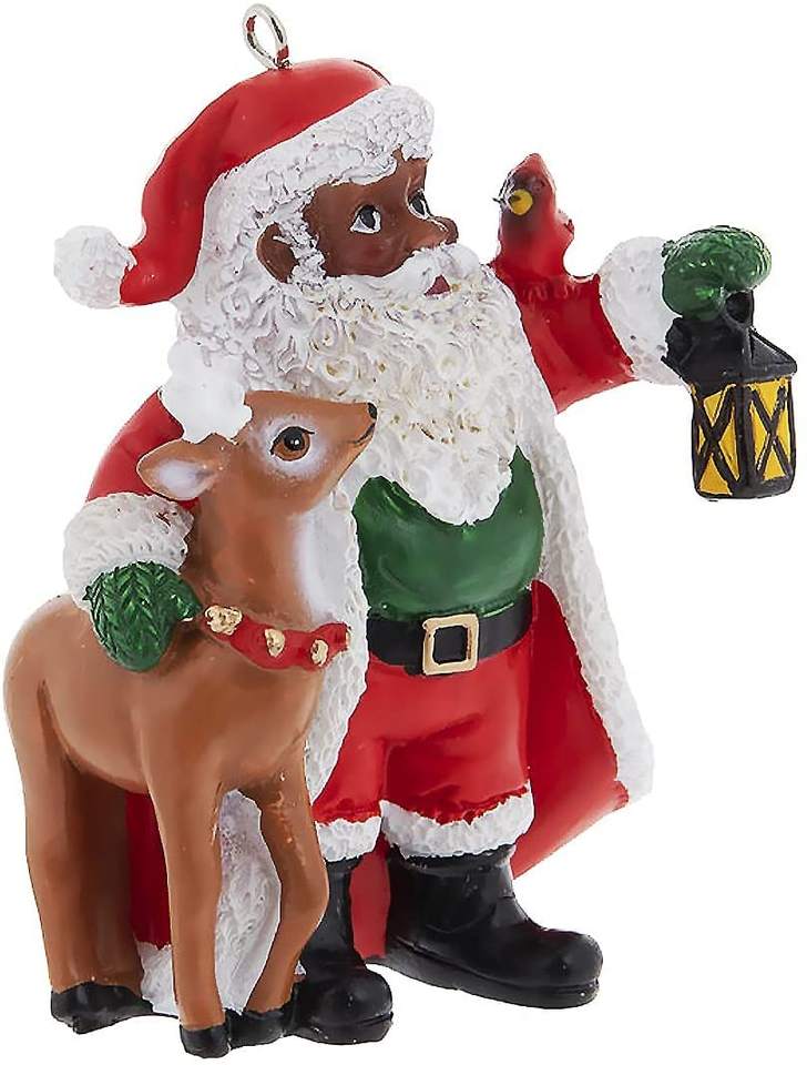 Black Santa Claus Ornament with Reindeer & LanternProduct name