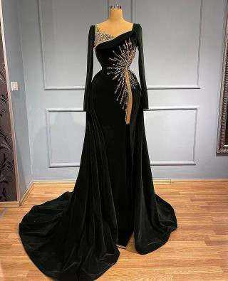 Robe de soirée maxi droite en satin noir avec manches courtes, ornée de perles, sexy, fendue sur le côté, vintage, pour les événements formels et les fêtes