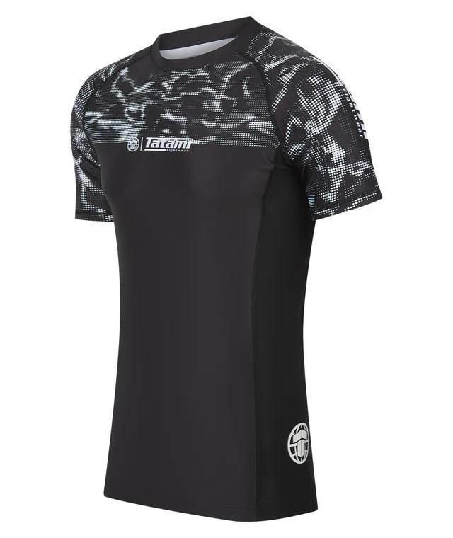 Rashguard à manches courtes noir respirant avec imprimé gris UPF50+ Séchage rapide Écologique