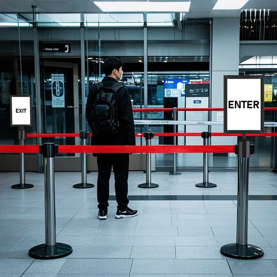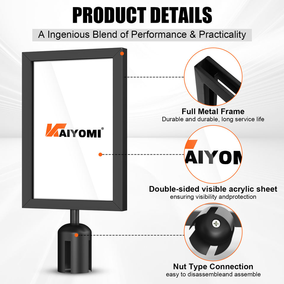 Porte-panneaux noirs, cadre noir pour poteau avec sangles rétractables, cadre porte-panneaux
