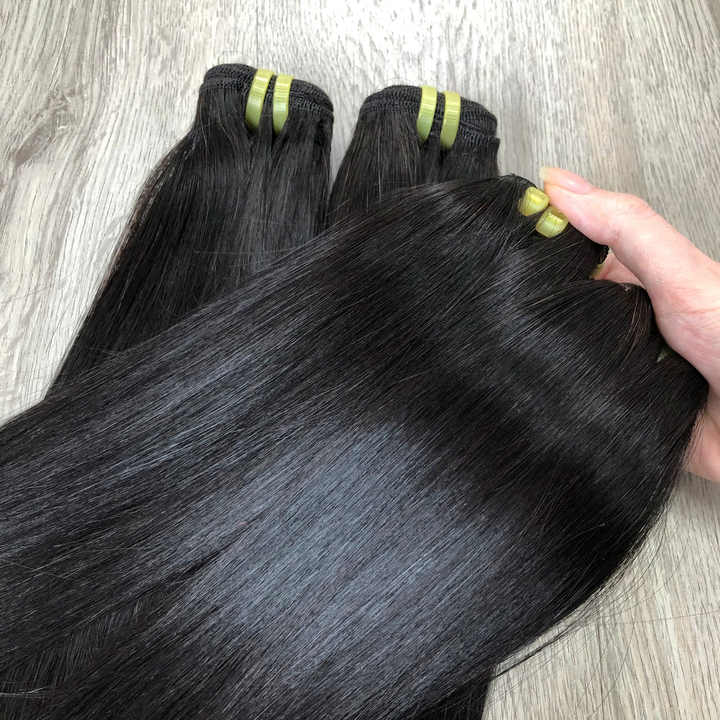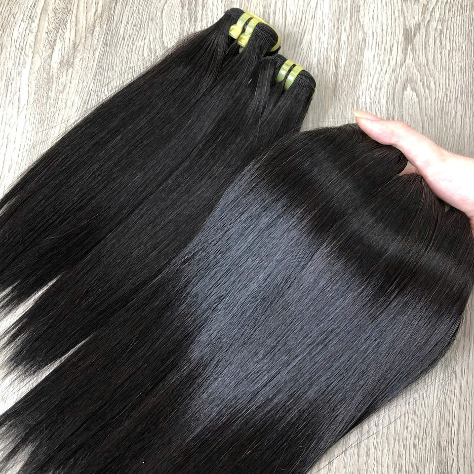 Paquets de cheveux humains vierges bruts non transformés droits soyeux noirs pour femmes noires Source vietnamienne
