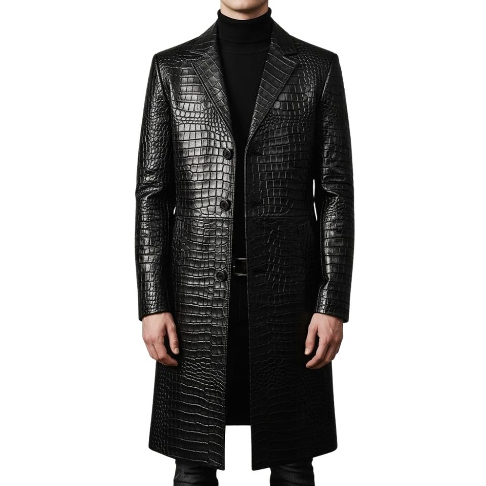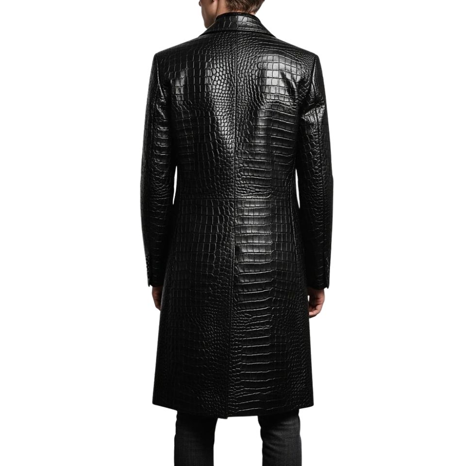 Black Snake Skin Cow Leather Canvas Leather Jacket-Embossed Texture Zipper Closure Waterproof Windproof Eco-Friendly Winter