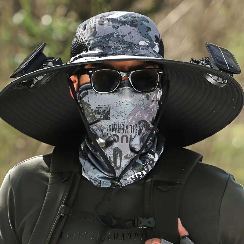 Black Solar Powered Outdoor Fishing Hat with Wide Brim and Fan for Men and Women-Camping & Work Use China