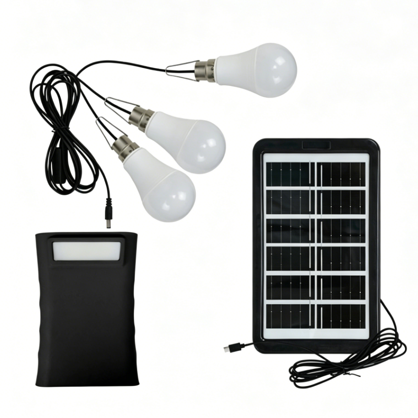 Black Solar Rechargeable LED Emergency Light, Camping Lantern for Night Market, Stall, Home Power Outage