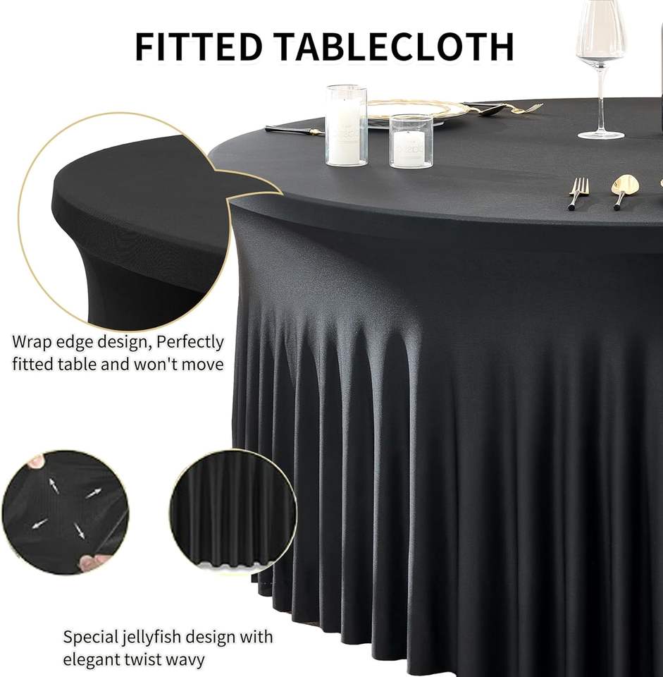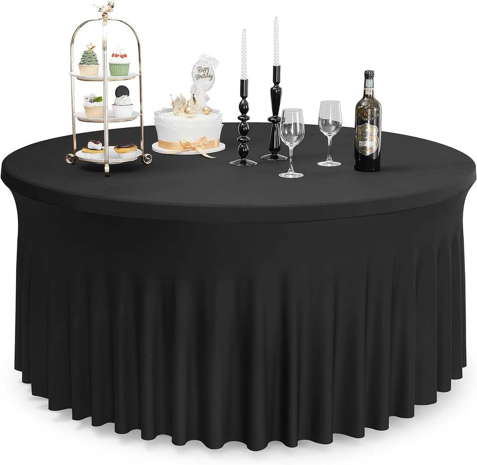 Nappes rondes en Spandex noir 120 pouces adaptées pour table de 60 pouces, nappes rondes extensibles de 5 pieds