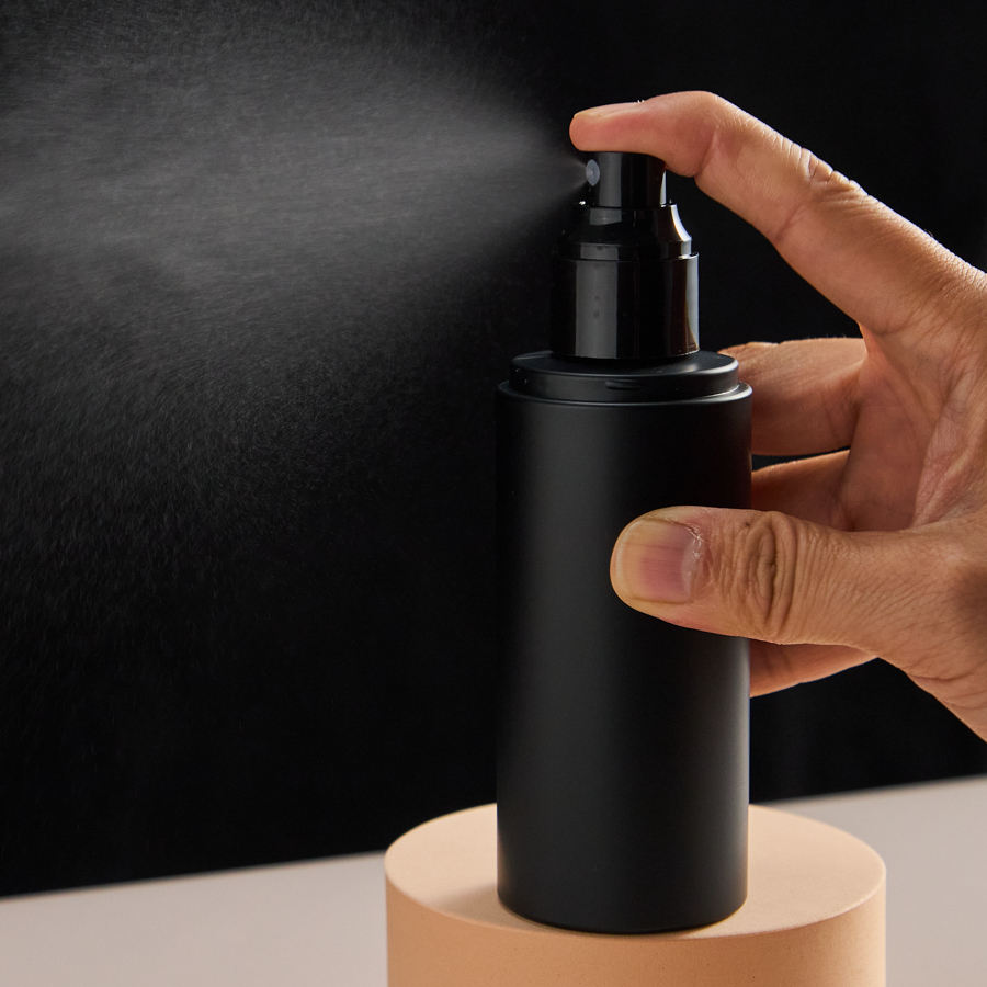 Flacon cosmétique rechargeable carré noir en plastique givré, flacon de brume pour cheveux, 4 oz, 120 ml, flacon pulvérisateur