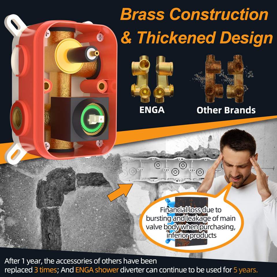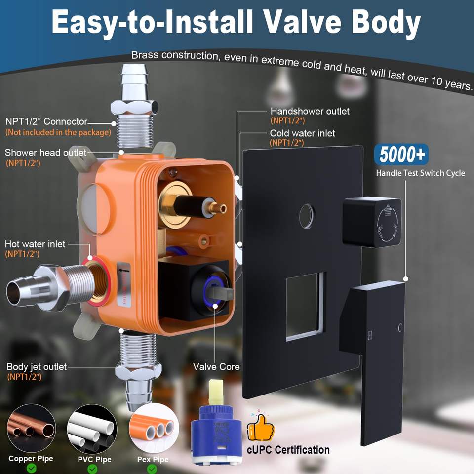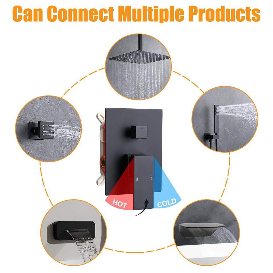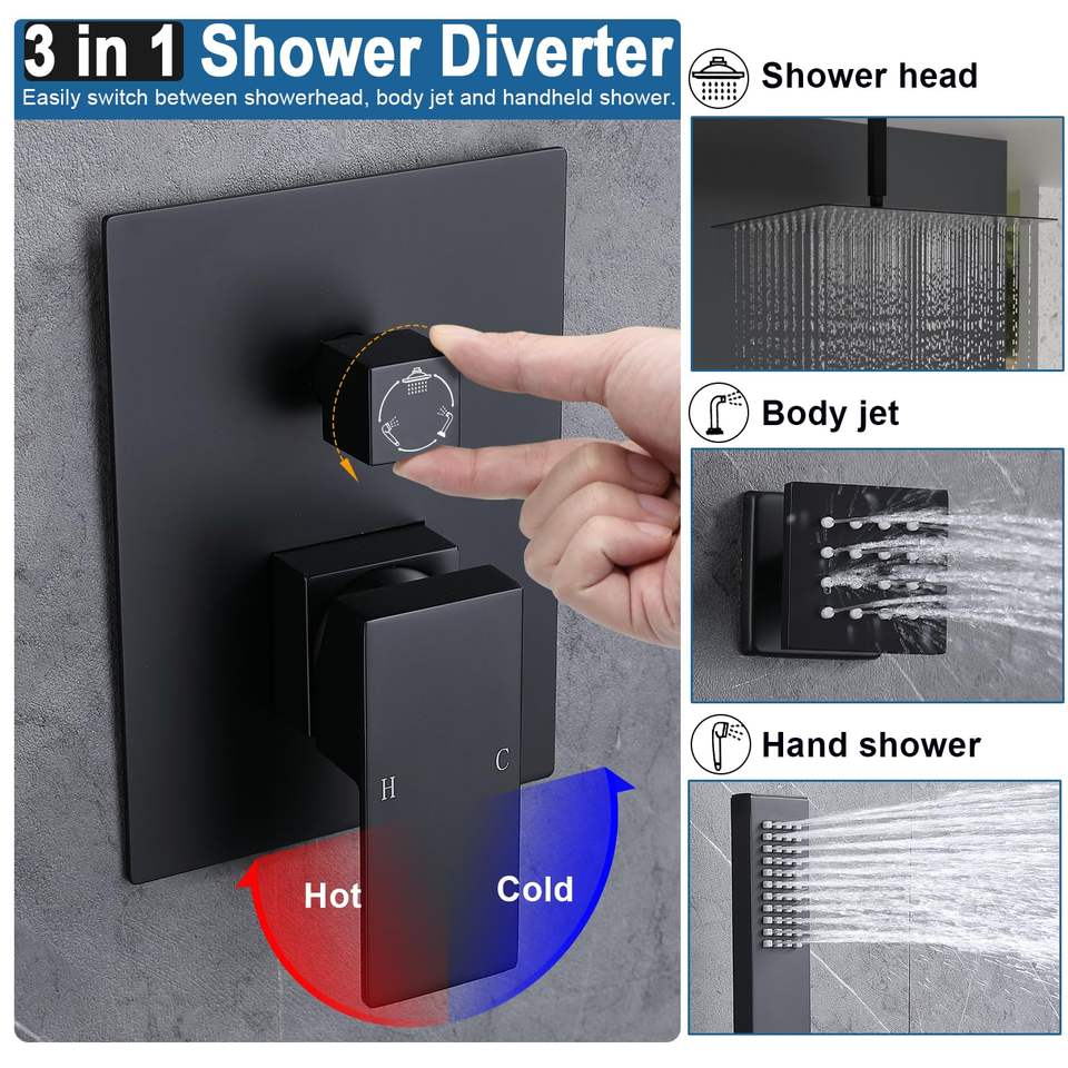 Robinet de douche mural carré noir à trois fonctions pour salle de bain d'hôtel, mitigeur inverseur 3 voies en laiton massif