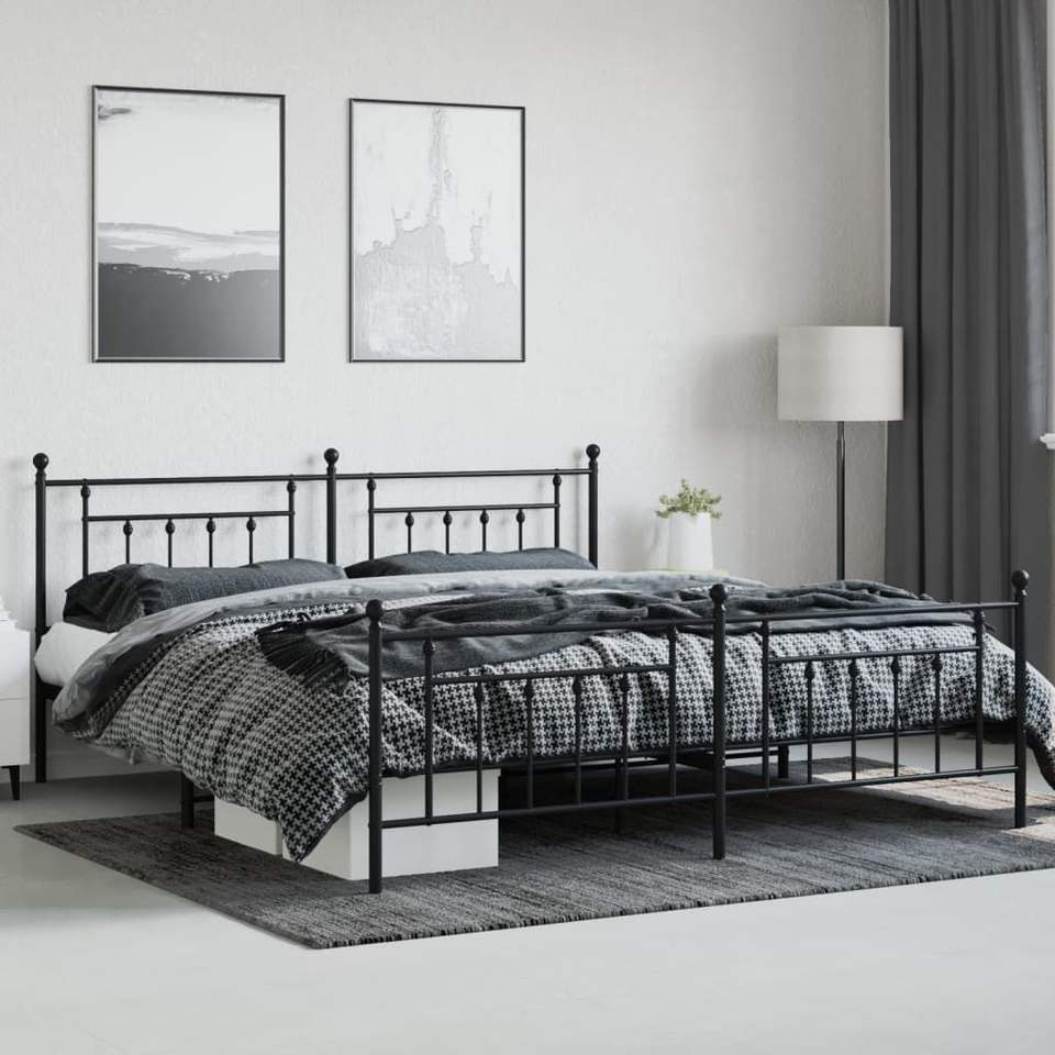 Cadre de lit complet en acier noir, design industriel rectangulaire, lit en métal