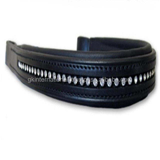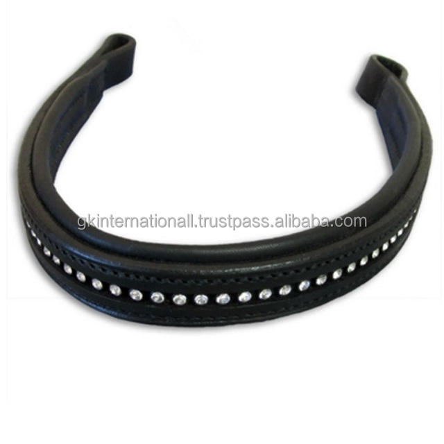 Bande de front de cheval en cuir rembourrée de canal vide de forme droite noire décorée de 1 rangée de cristaux de marque bande de front de chaîne diamante