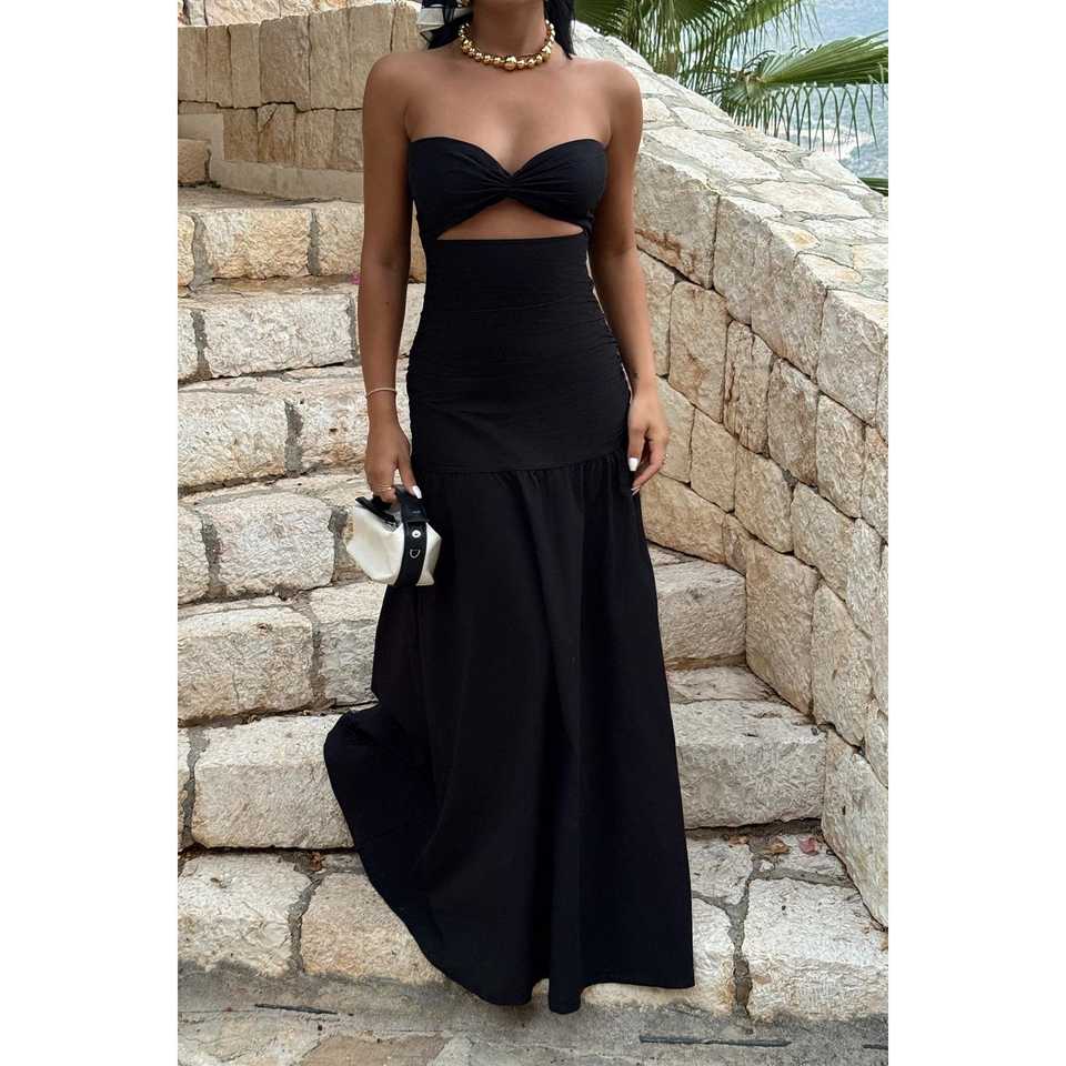 Robe de bal noire sans bretelles, conçue sur mesure, taille XS, robe de soirée formelle, robe de bal, fente haute, taille empire, décoration en strass, haute