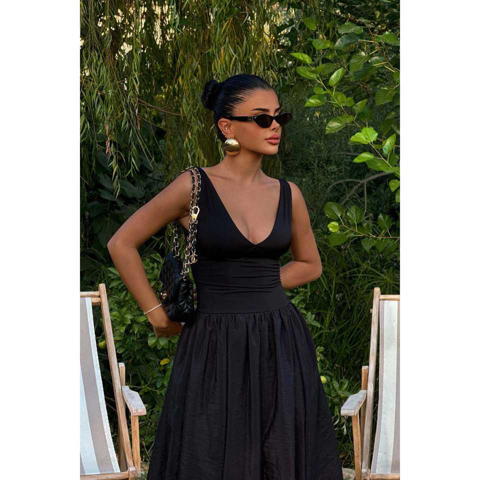 Robe de cocktail noire à bretelles
