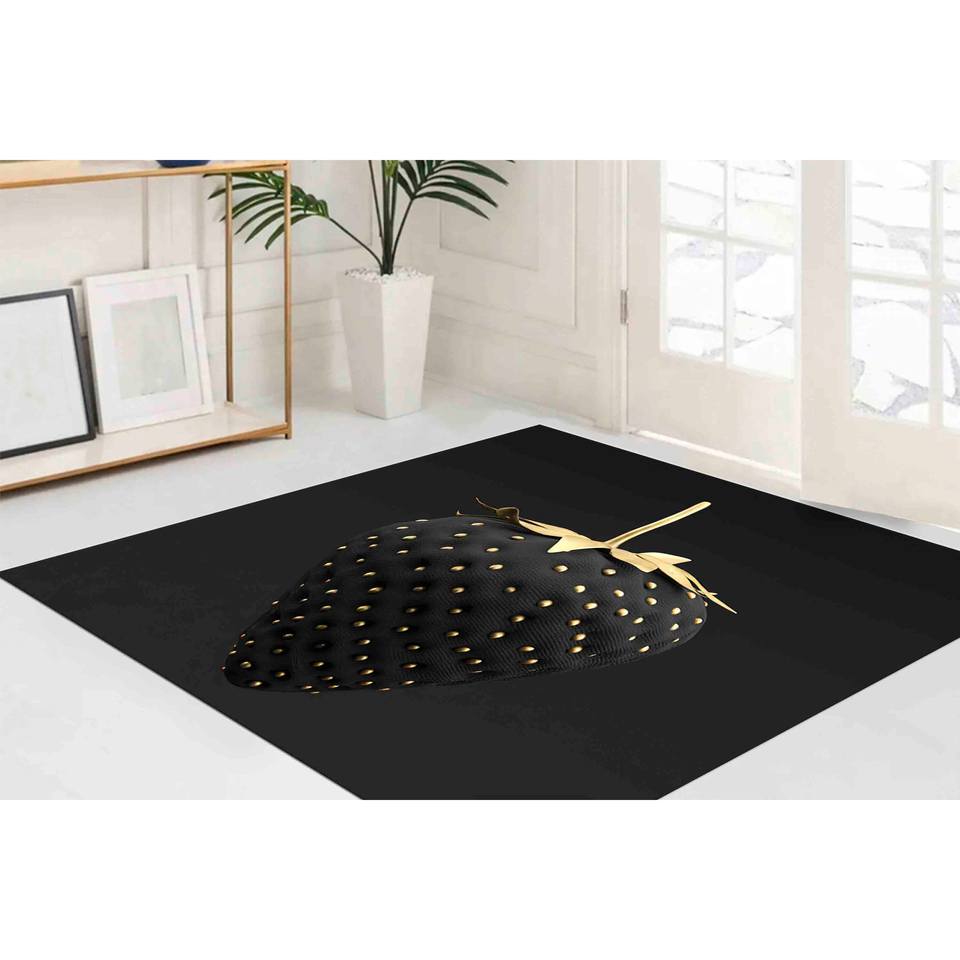Tapis Noir Fraise : Tapis Imprimé Moderne pour Salon, Tapis Doux à Poils Longs