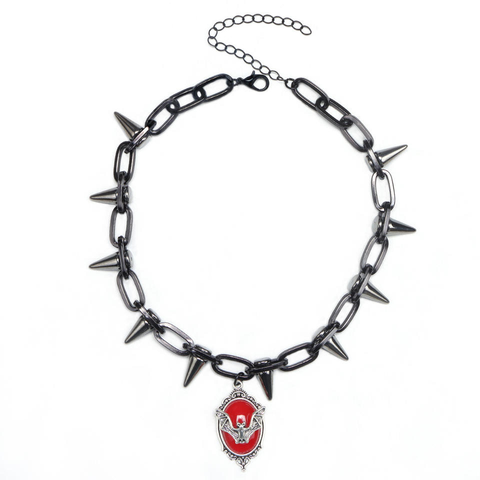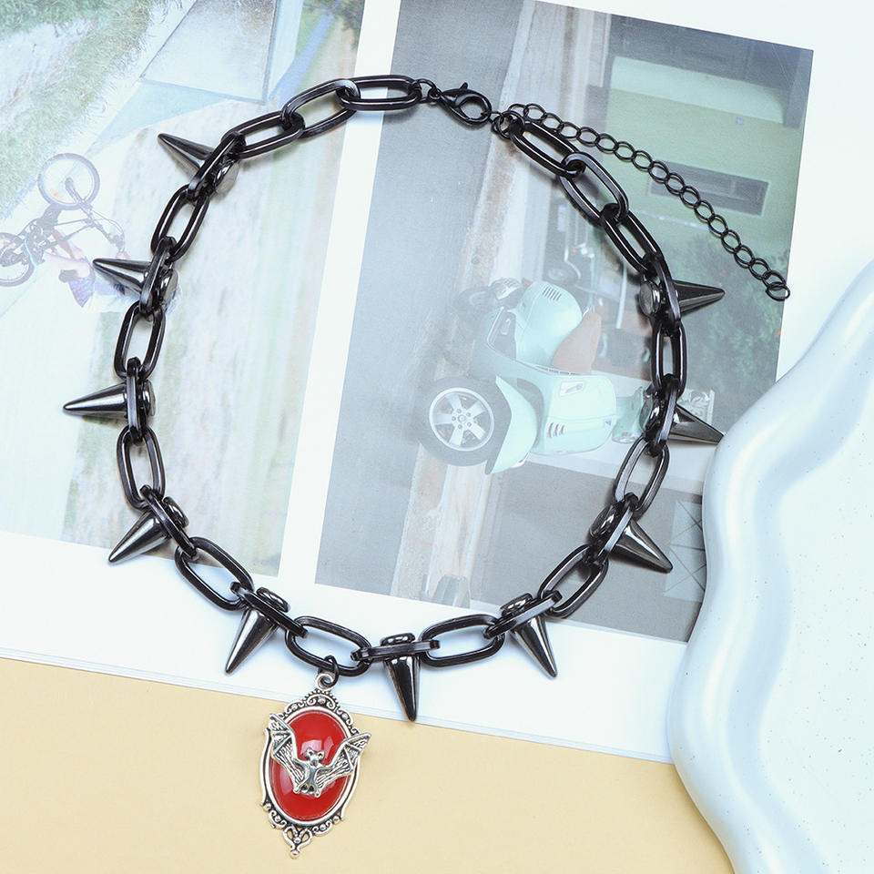 Collier gothique avec pendentif chauve-souris en rubis noir pour hommes et femmes, bijoux tendance de style hip hop