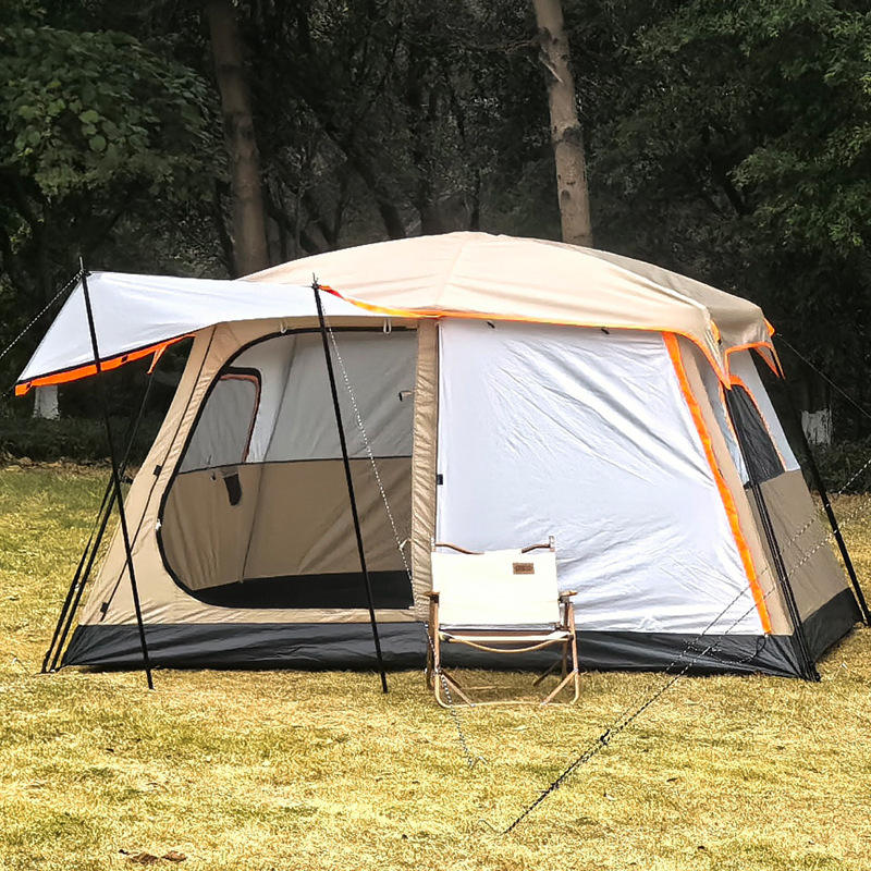 Tente de camping double couche noire, style deux chambres et un salon, imperméable et anti-UV, pour 1 à 6 personnes