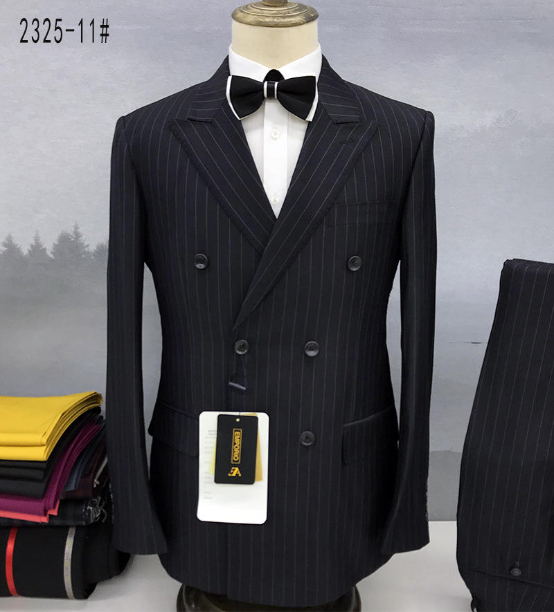 Black Suit Stripe Business Suit Men's Two Pieces Double Breasted Banquet Wedding Suits for Men