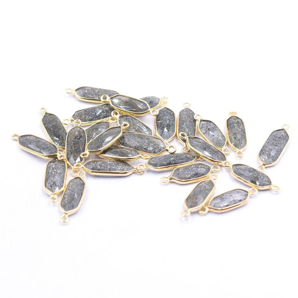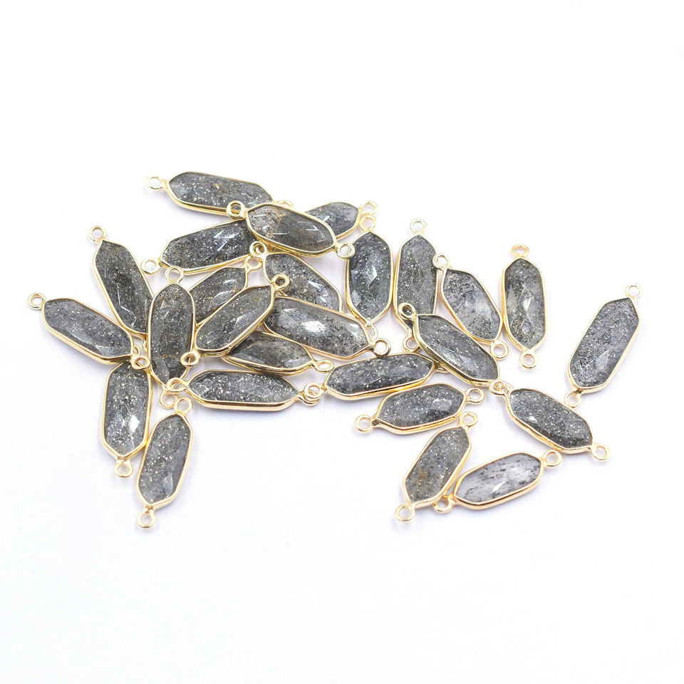 Product Name:Black Sunstone Hexagon Shape Silver Bezel Gold Plated Connector