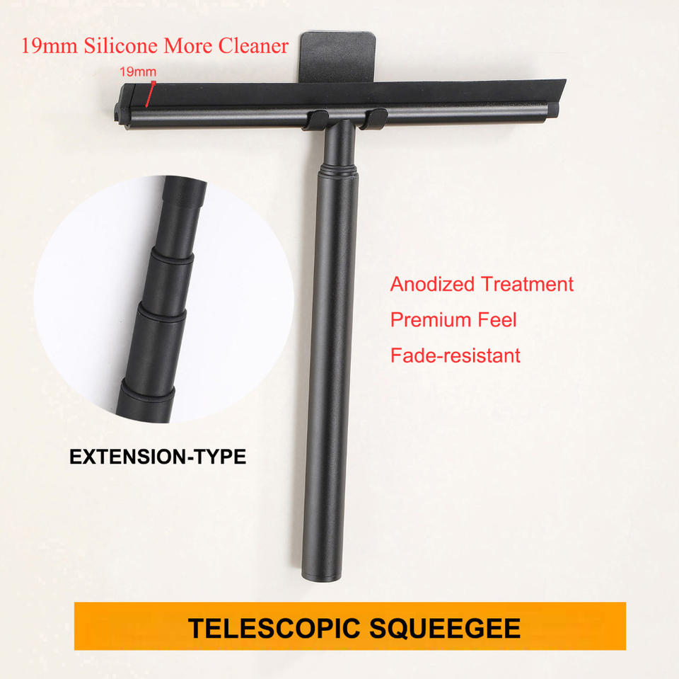 Raclette de douche télescopique en silicone noire, raclette rétractable pour fenêtres, raclette pour miroirs, essuie-glace pour vitres, nettoyeur de table