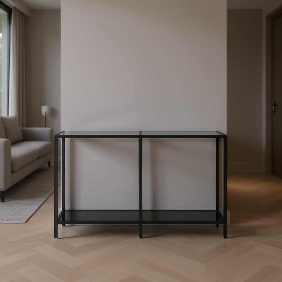 Table console en verre trempé noir, acier peint en poudre, mobilier moderne pour salon, décoration intérieure