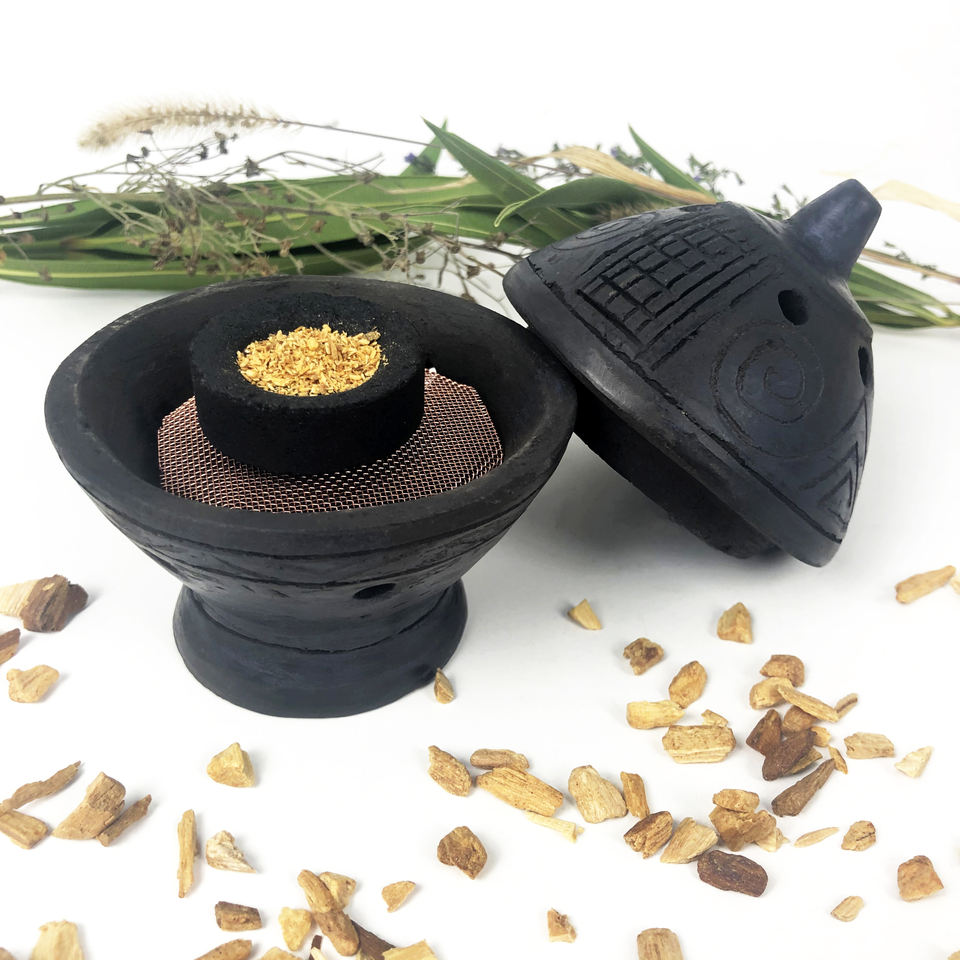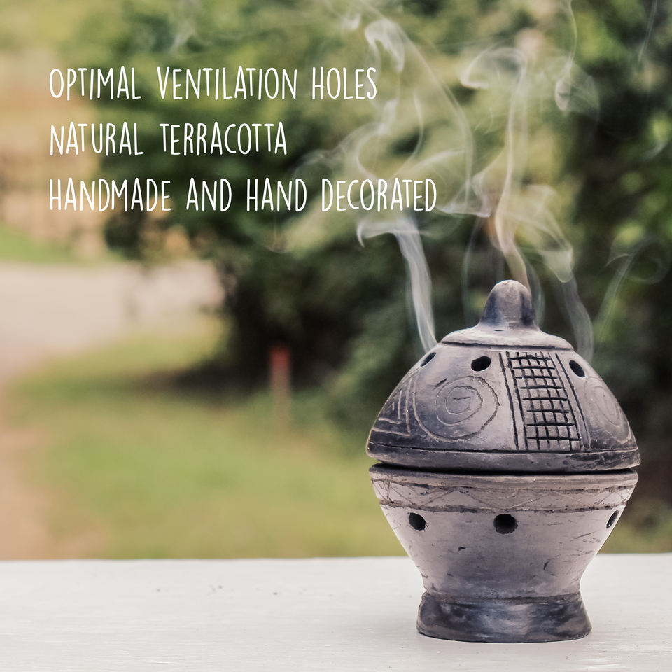 Porte-encens en terre cuite noire - Convient aux cônes et aux copeaux - Fait à la main en Équateur - Brûleur d'encens Palo Santo - Prix de gros