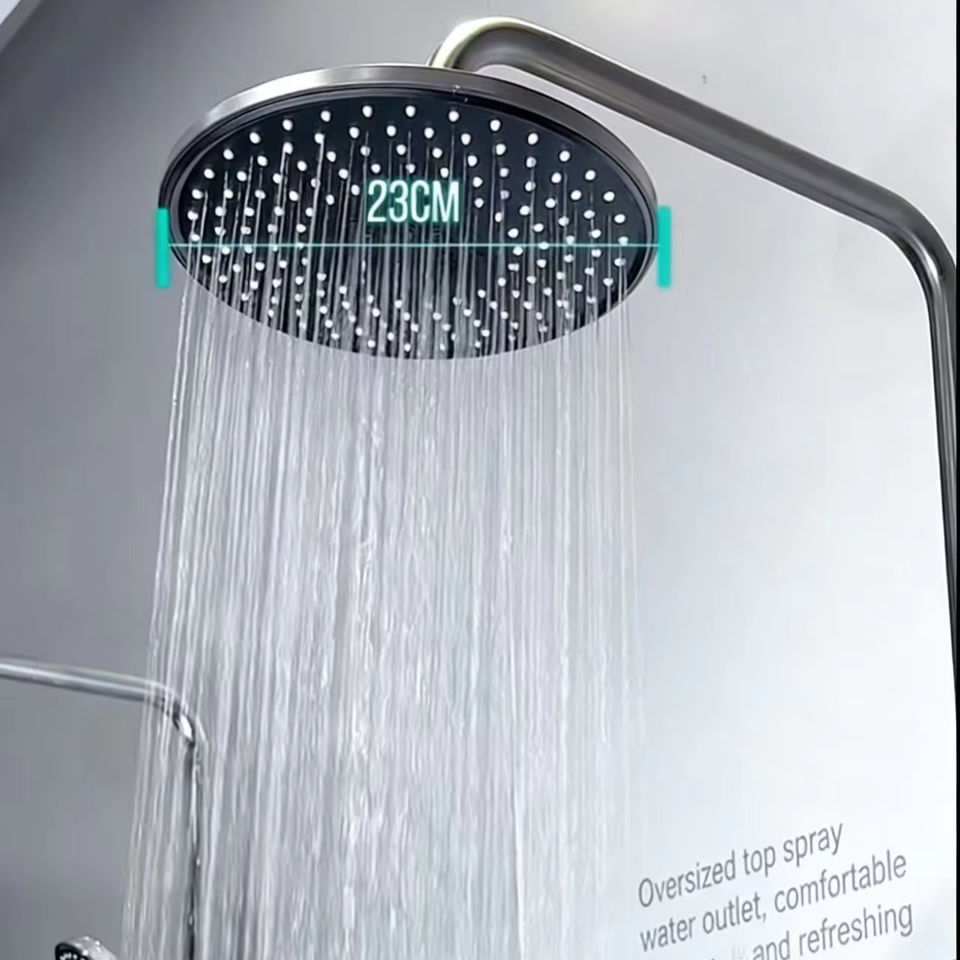 Ensemble de douche thermostatique LED noir à effet pluie douce, barre coulissante en acier inoxydable, jets de plafond et douchette à main, finition mate polie, style moderne pour hôtel