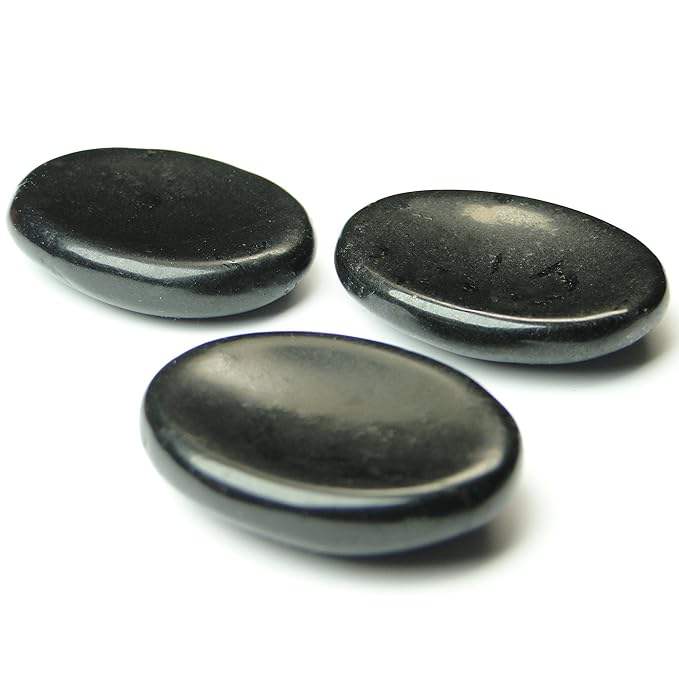 Black Tourmaline Palm & Thumb Stones - Handcrafted Healing Crystals for Anxiety Relief and Spiritual Defense