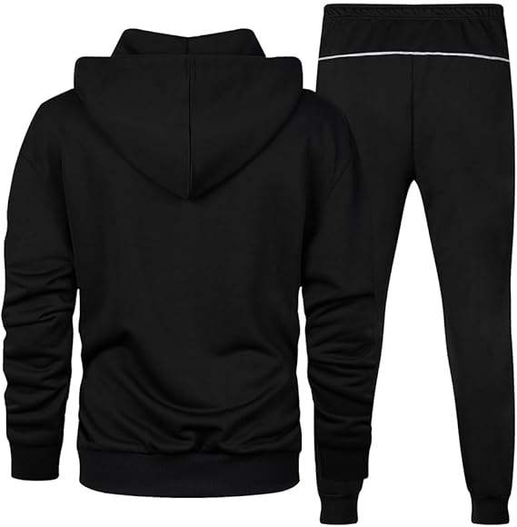 Survêtement noir avec veste à capuche zippée à rayures grises et pantalon de jogging 2 pièces tenue personnalisée vêtements de sport décontractés Streetwear