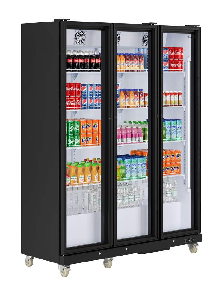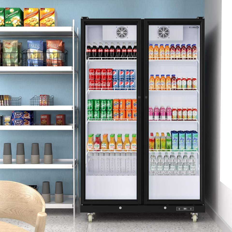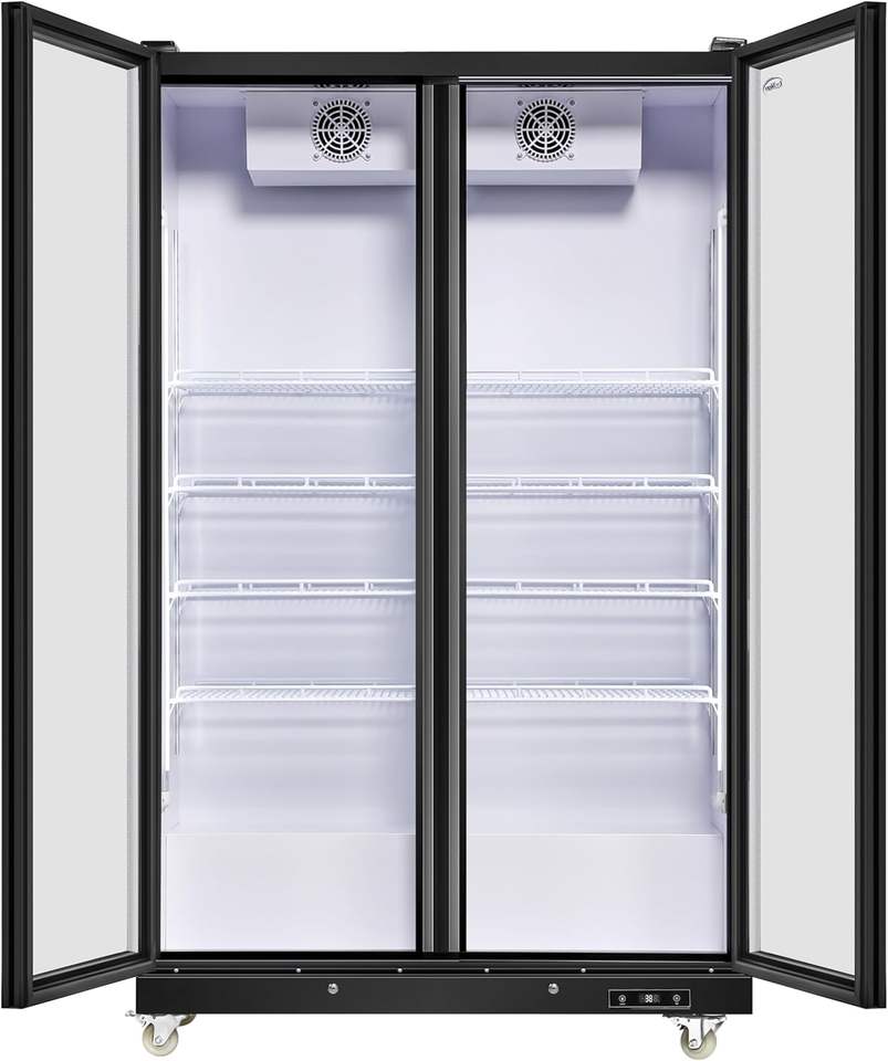 Deux portes noires 47 po. Réfrigérateur à vin entièrement en verre Réfrigérateur commercial et congélateur