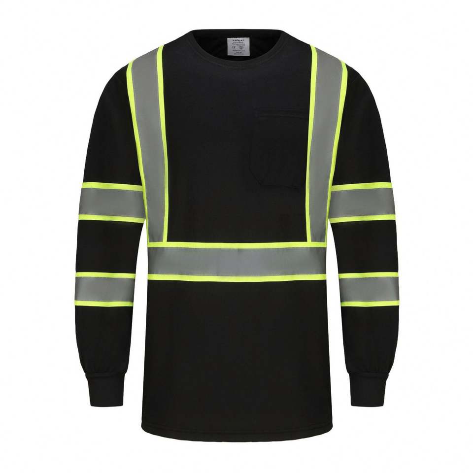Chemise de sécurité noire à manches longues bicolore Chemises à manches longues haute visibilité Vêtements de sécurité réfléchissants