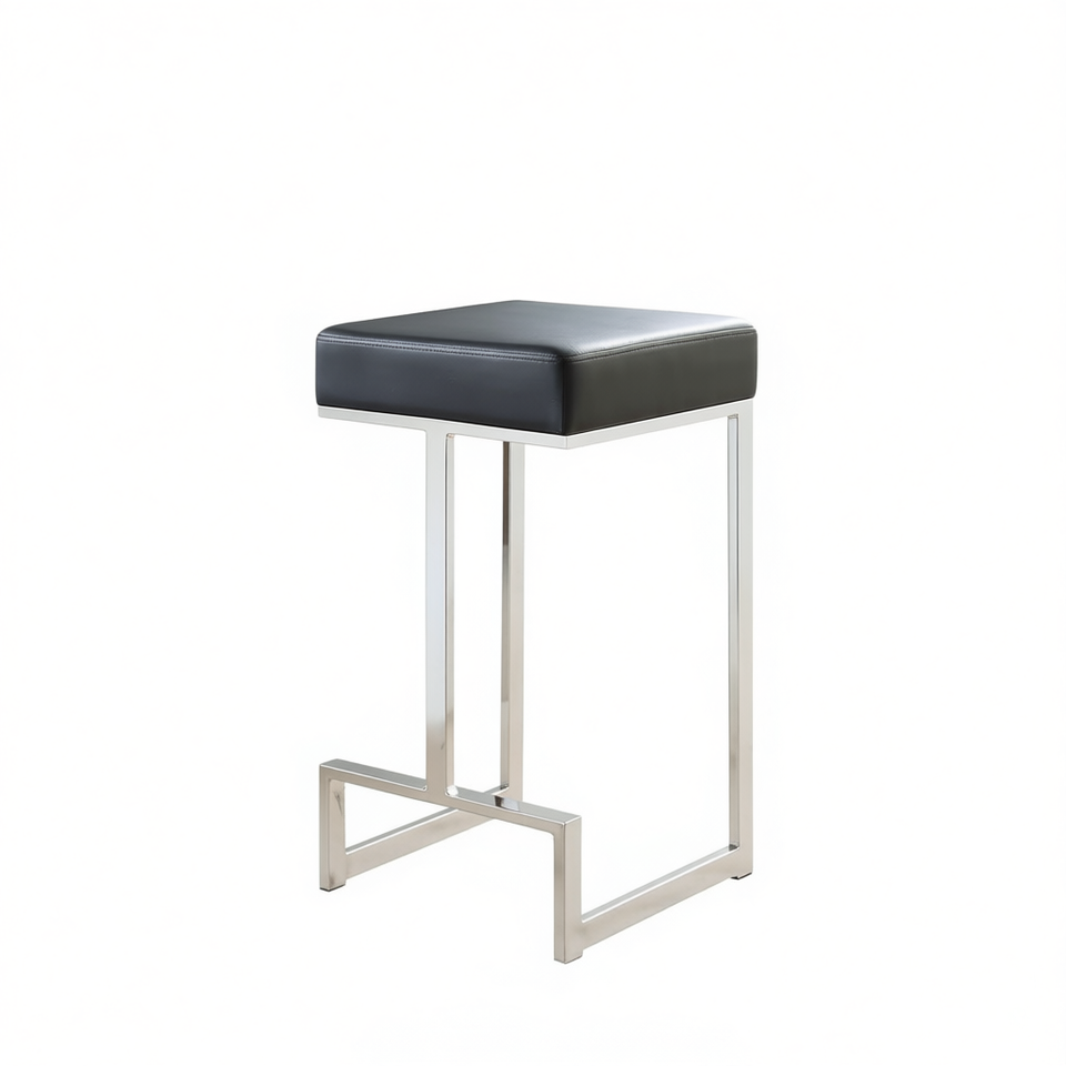 Tabouret de bar rembourré noir, hauteur standard, structure chromée moderne, mobilier de maison