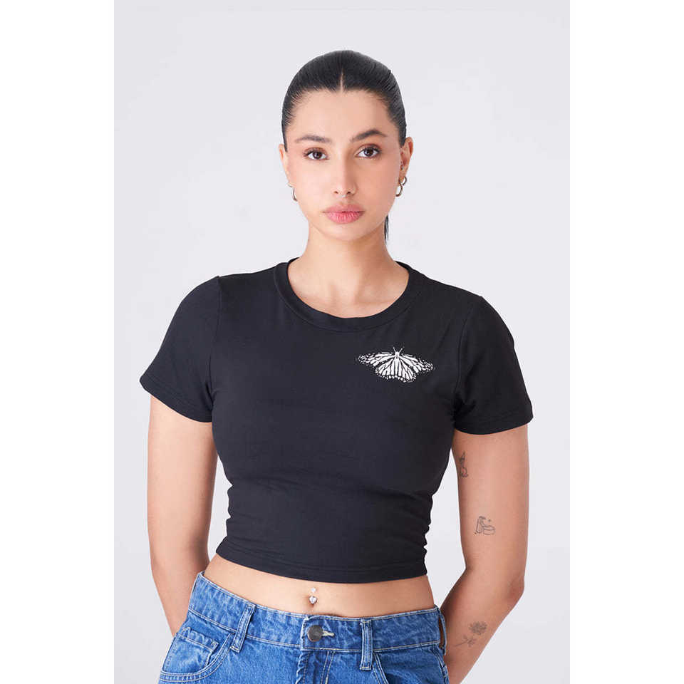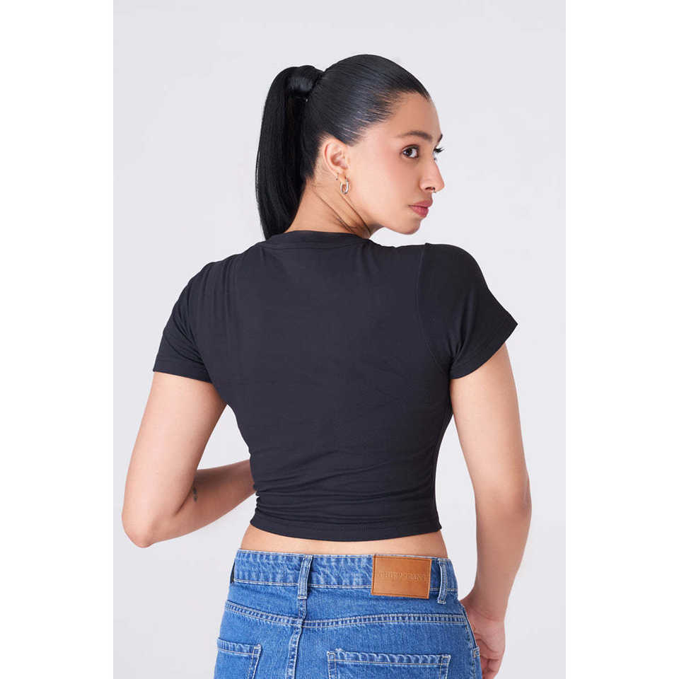 Crop top noir polyvalent et actif en polyester pour un style chic et confortable